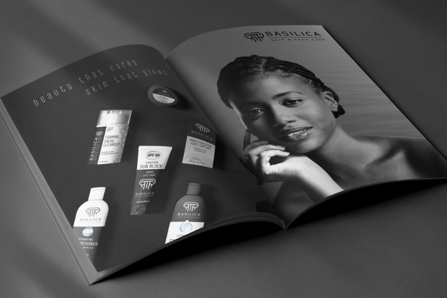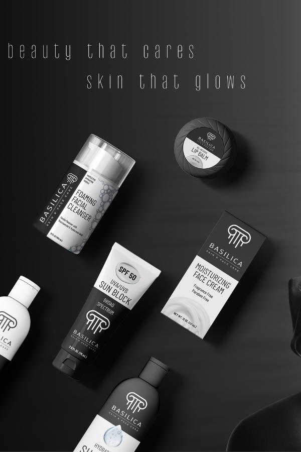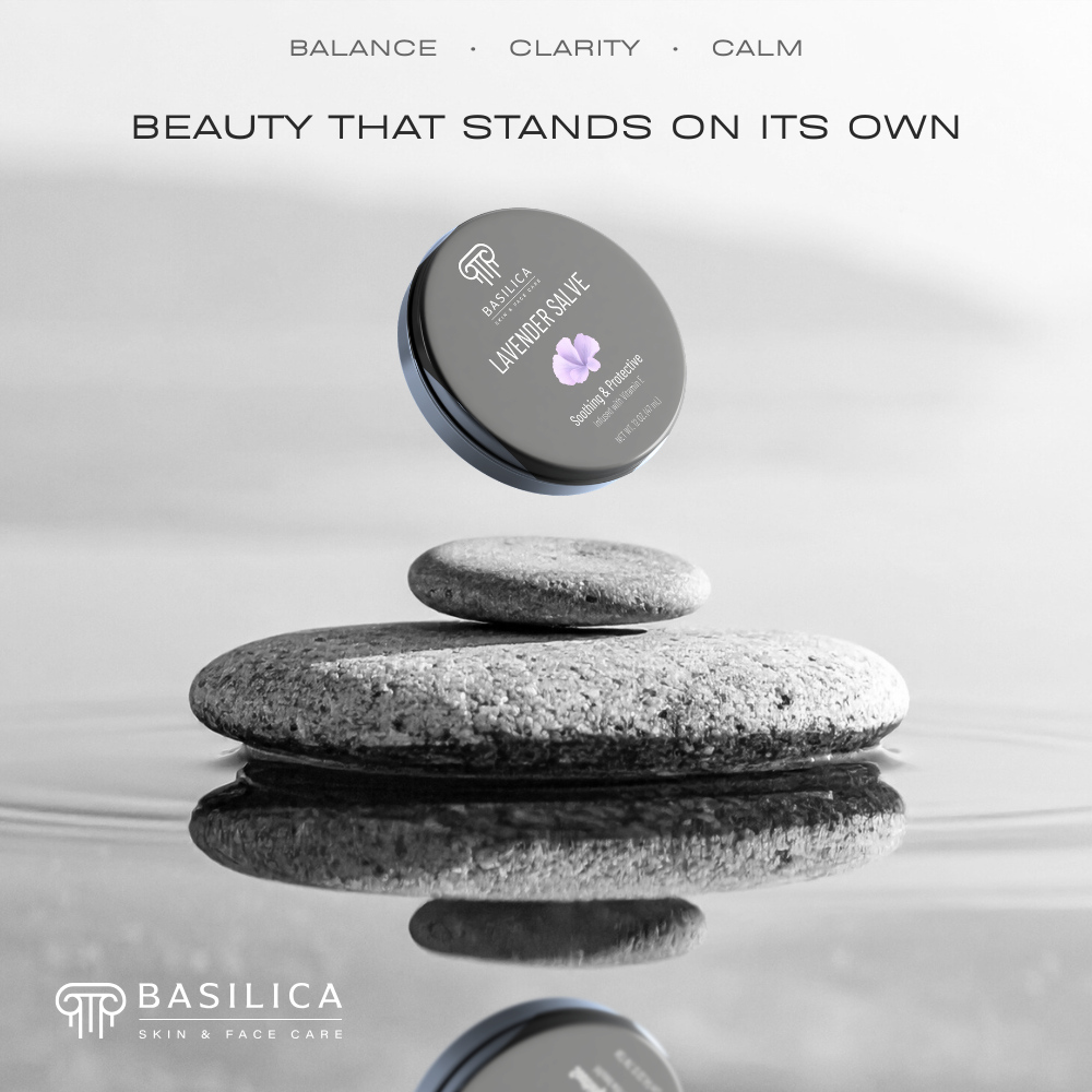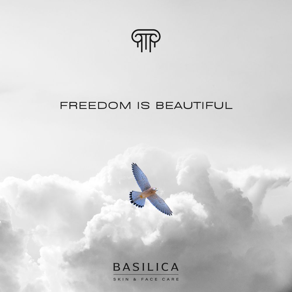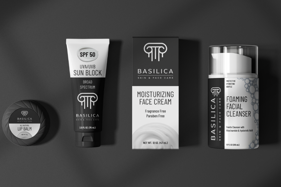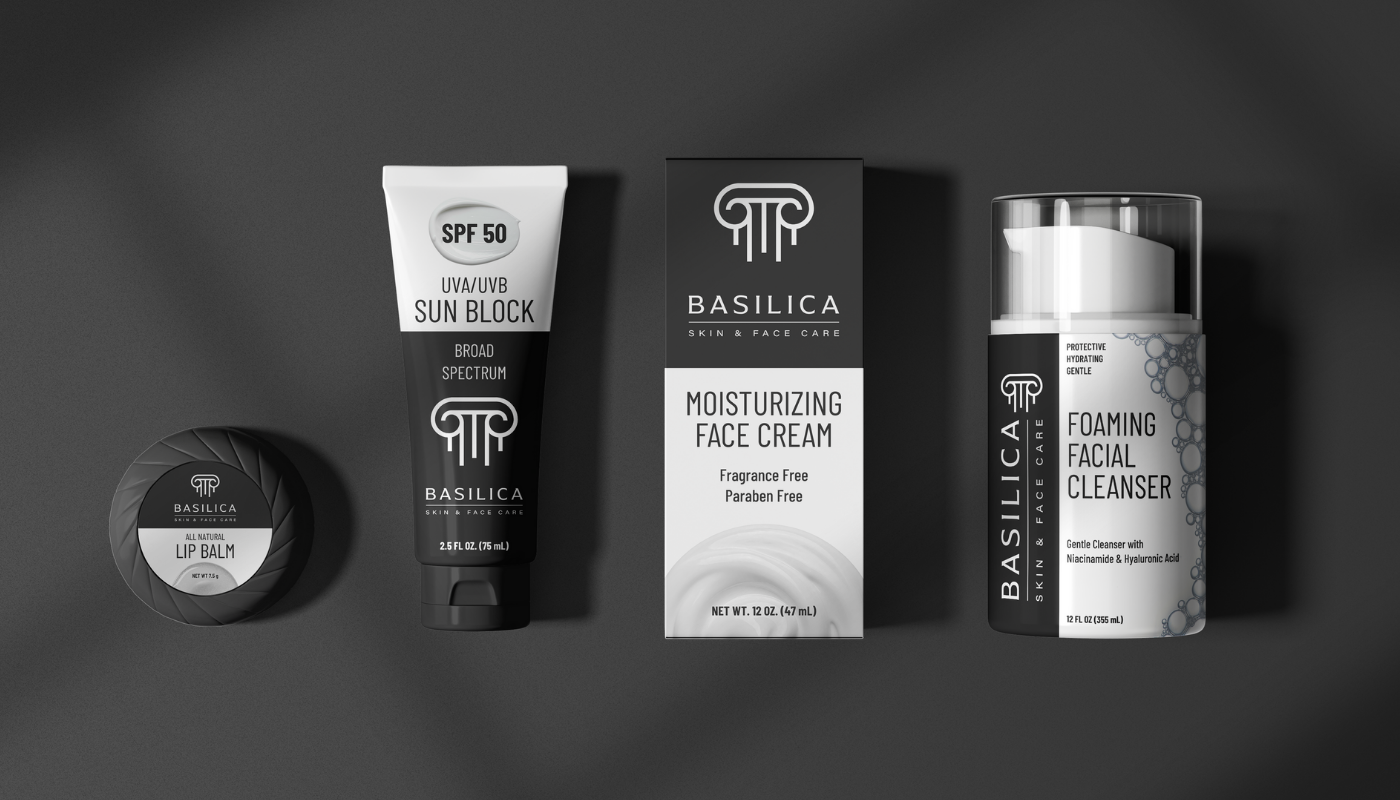 Pure white and black is all about balance, and much like the balancing act within skin care—pH, moisture, coloration, etc.—Basilica represents a fulcrum between healthy skin and beauty. Using roman iconography and the strength of ancient columns, this brand embodies calm with a strong foundation, enough to weather against the ages like white marble against the darkening storm.