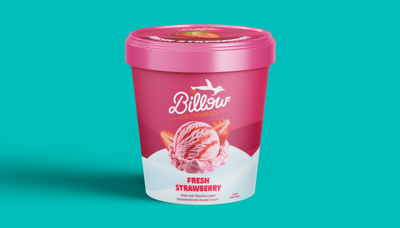 Billow Ice Cream Co. brings rich and creamy frozen treats full of high quality chunks of fruit, chocolate, or cookies in every bite. Their signature teal coloring adds a cooling, slightly arctic vibe, especially with the Billow mascot: Bill the Penguin. Using color blocking with a little geometric texture, each design is friendly and approachable, while the gorgeous photography of ice cream and ingredients make those cravings for ice cream all that more irresistible.